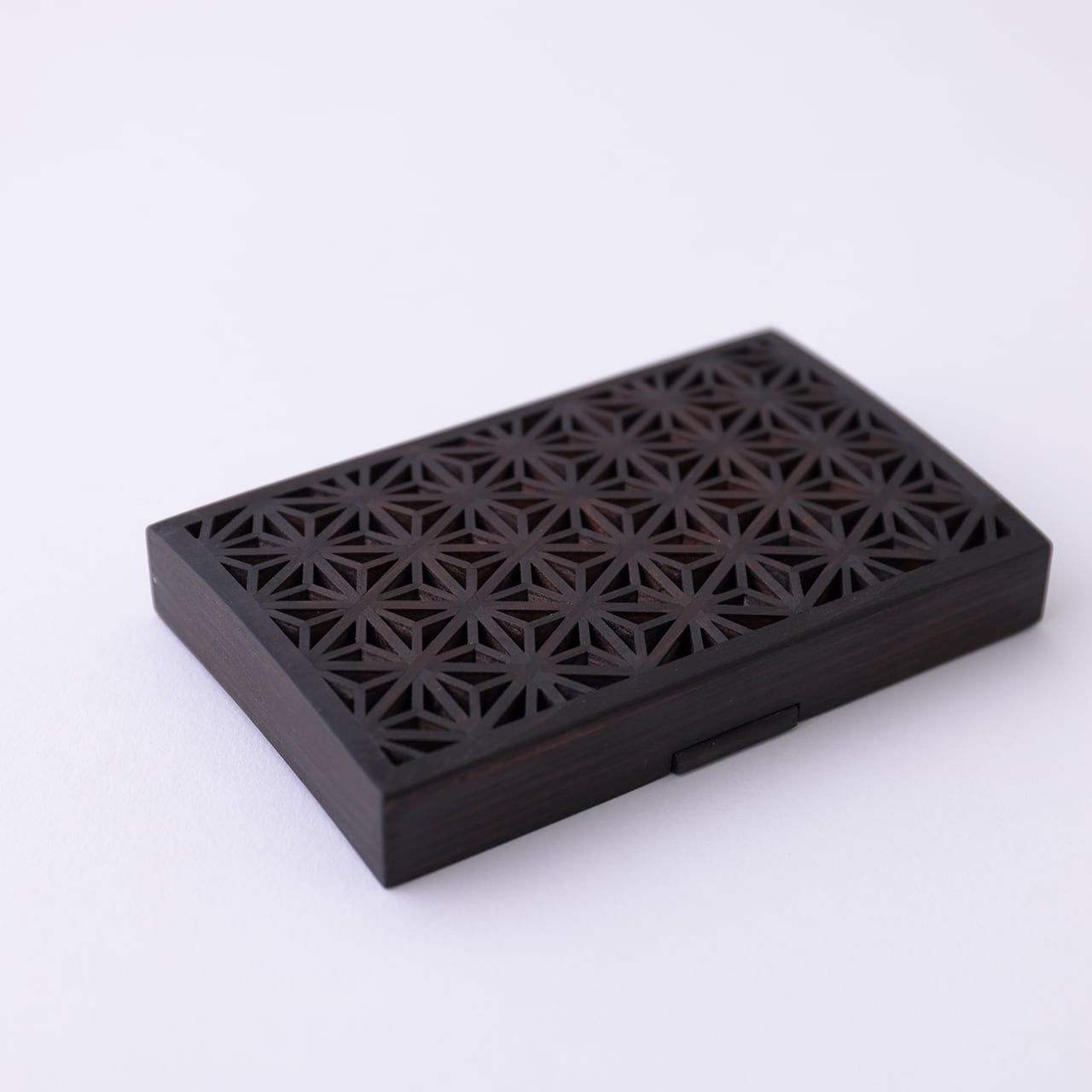 麻の葉文様を施したカードケース。麻の葉文様は平安時代から伝わる文様で、魔除けや子どもの成長を願うなど、日本では古くから広く親しまれています。