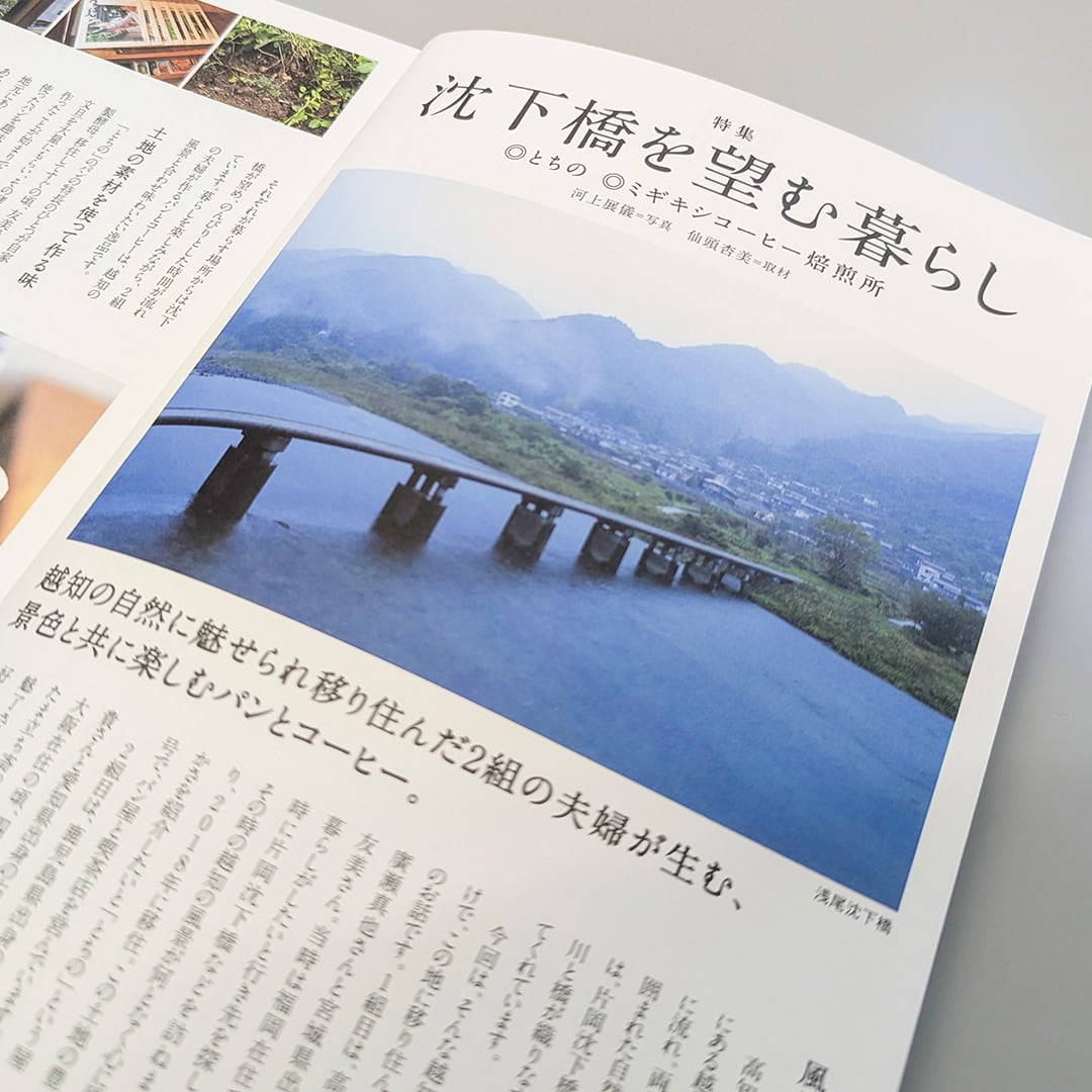 冬季号の特集は、越知の町に魅せられ移り住んだ2組の夫婦、土地のものを使った自家製酵母でパンを作る「とちの」さんと、コーヒースタンドを営む「ミギキシコーヒー焙煎所」さんです。周囲の人のあたたかい心に触れながら穏やかな暮らしを楽しんでいます。